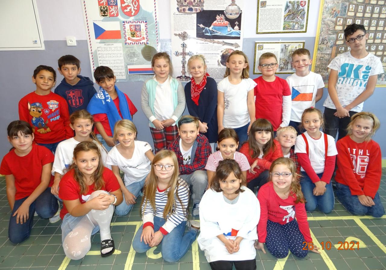 26.10.2021 jsme si ve škole připomněli červenomodrobílým dnem 103 let od vzniku samostatného Československa.