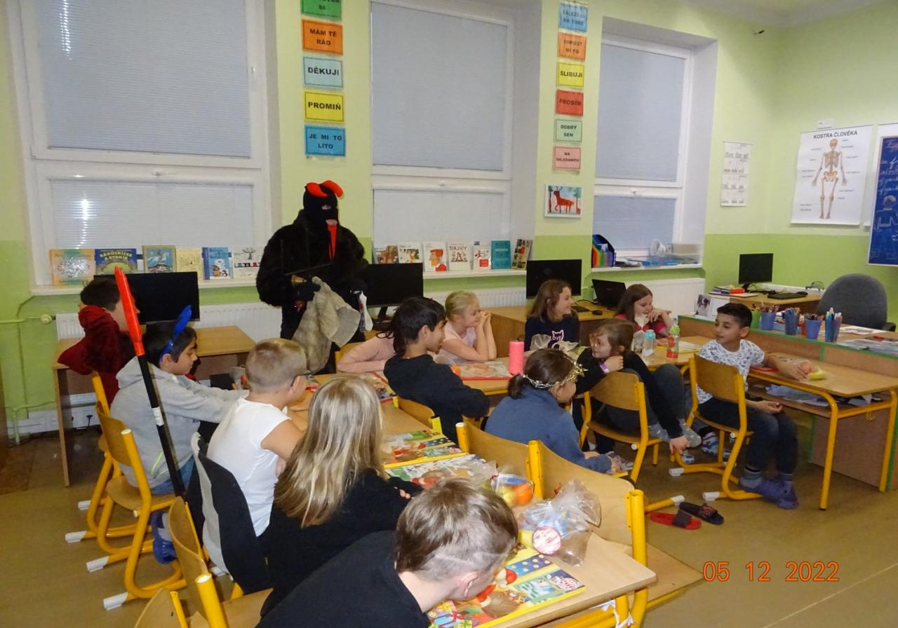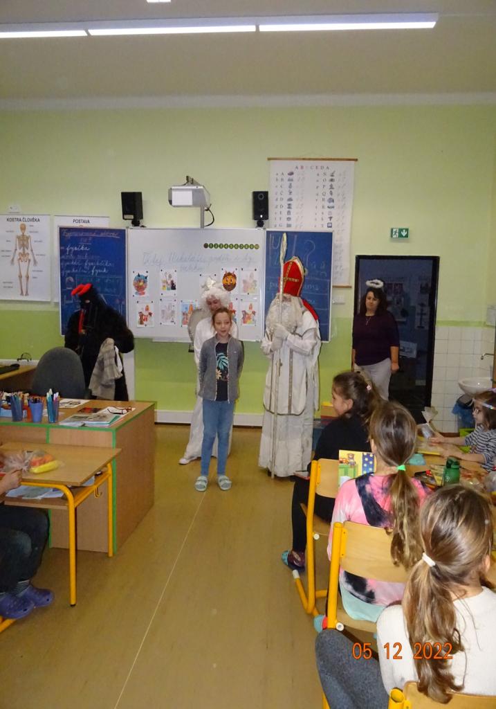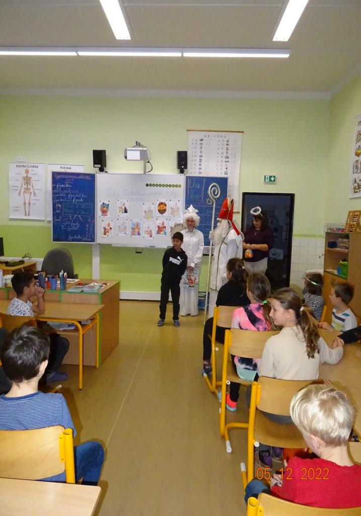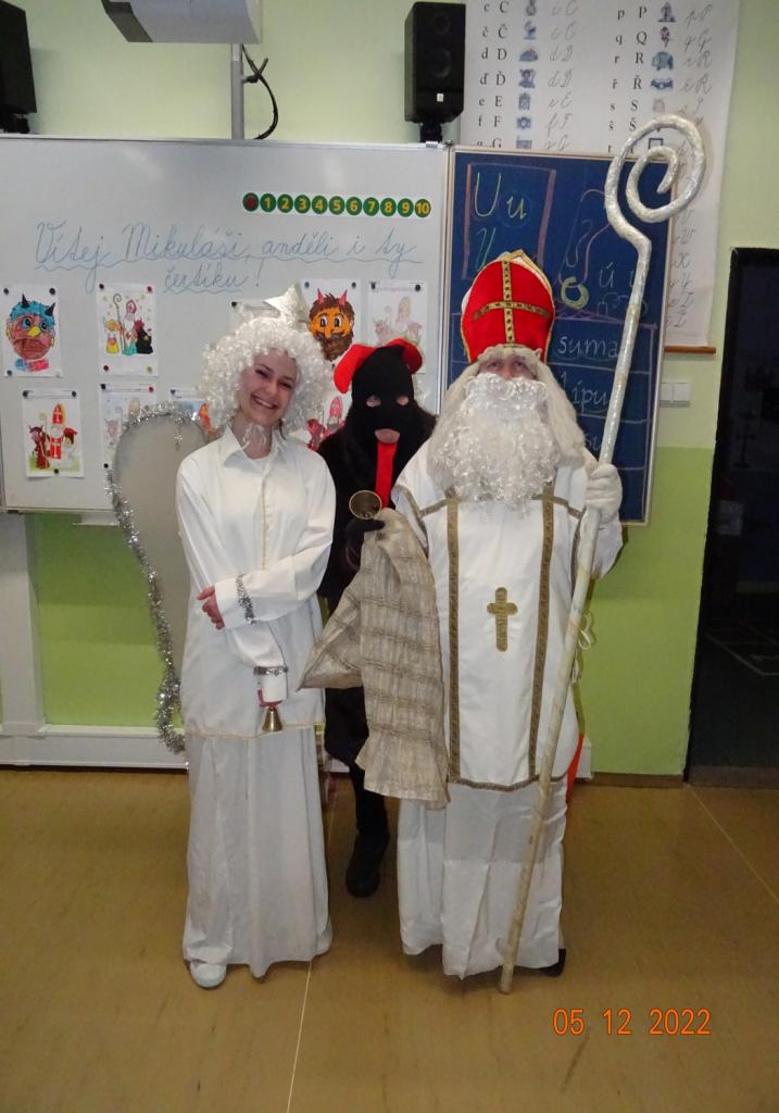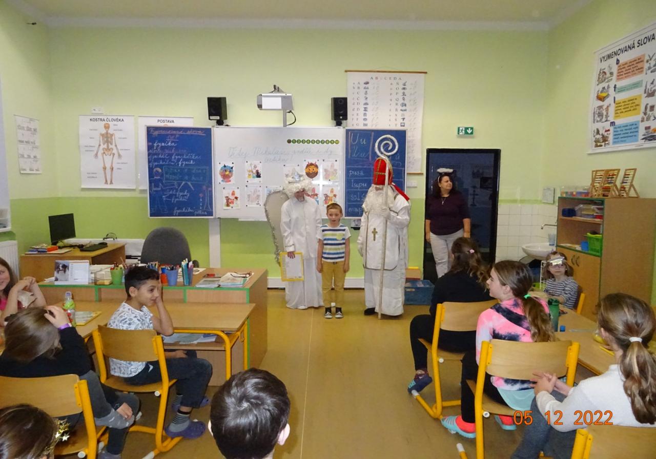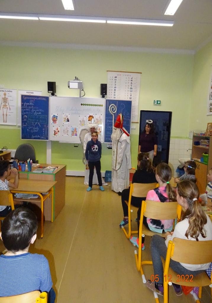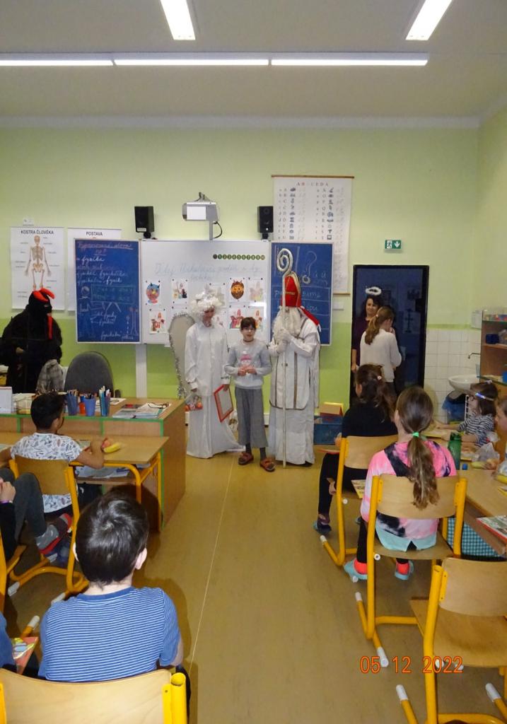 5.12.2022 nás již tradičně navštívil Mikuláš, anděl a čert. Děti jim přednesly připravené básničky nebo zazpívaly písničky. Za svou snahu byli žáci odměněni balíčkem s dobrotami a adventním kalendářem.