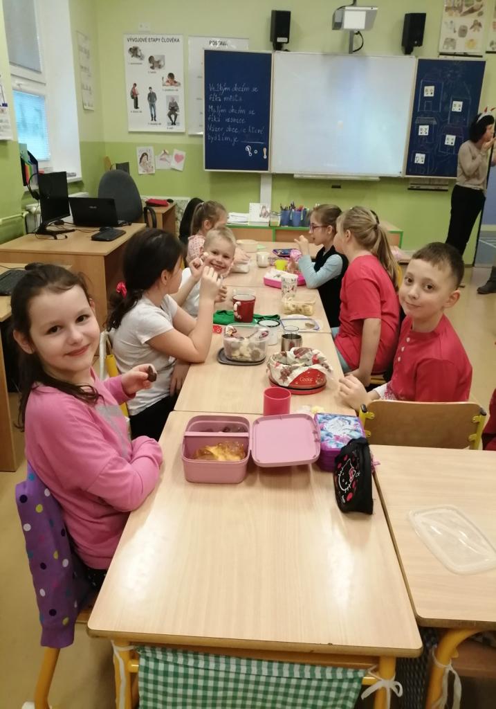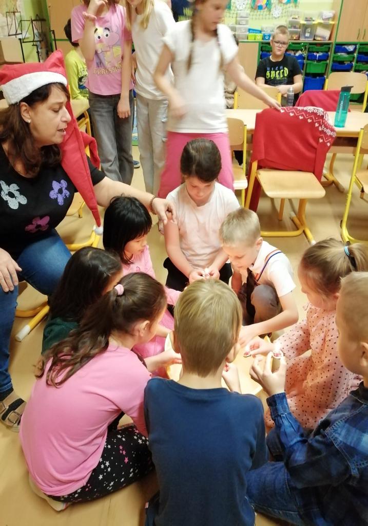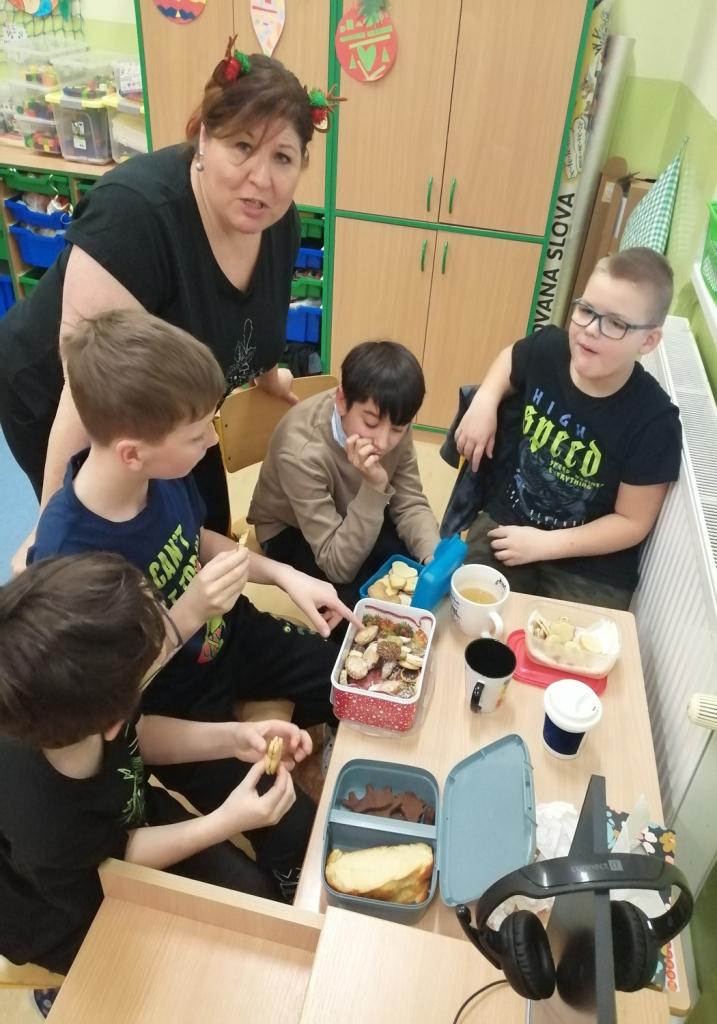 Vánoční besídku jsme zahájili povídáním o historii Vánoc. Vyzkoušeli jsme si některé vánoční tradice. Ježíšek nám nadělil dárky pod školní stromeček. Před obědem jsme stihli sníst vánoční cukroví, pohrát si s hračkami a podívat se na pohádku.